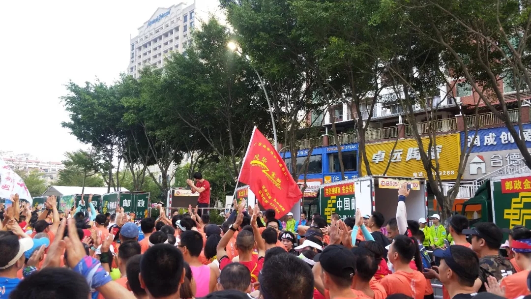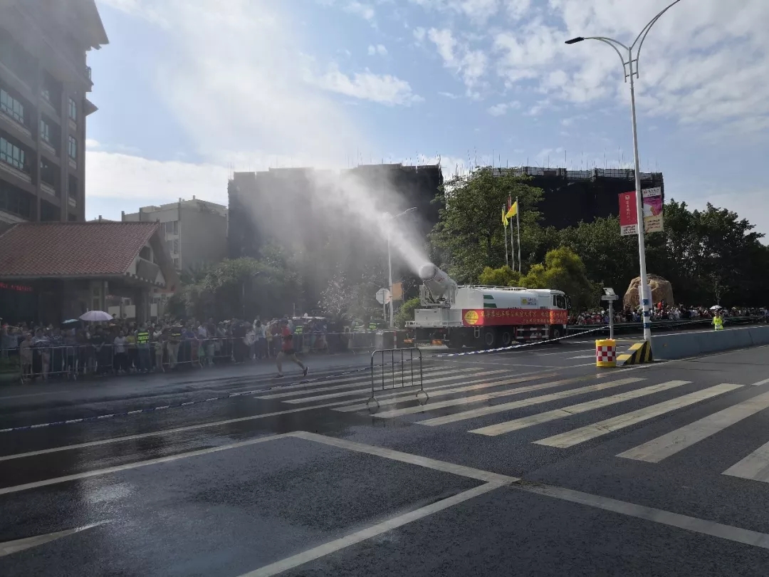 早上7點,風華環保的降溫服務隊伍已就位。這是風華環保第二次助力梅州馬拉松賽事