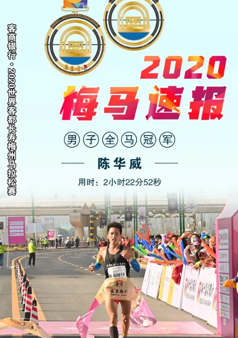男子全馬冠軍是來自惠州的客家人陳華威,他打破了2018年由李偉創下的2小時23分52秒的賽會紀錄。陳華威告訴記者,“我是來自惠州的客家人,參加馬拉松賽的次數已經數不清了,但在梅州是第二次,一路的山水給我留下了很深刻的印象。”