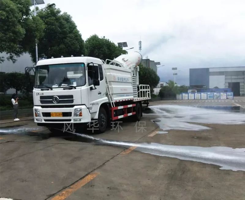 “霧炮車”可蓄水8噸,通過遠距離噴霧系統能噴射100米遠、50米高的水霧,有強大的噴霧降塵作用。