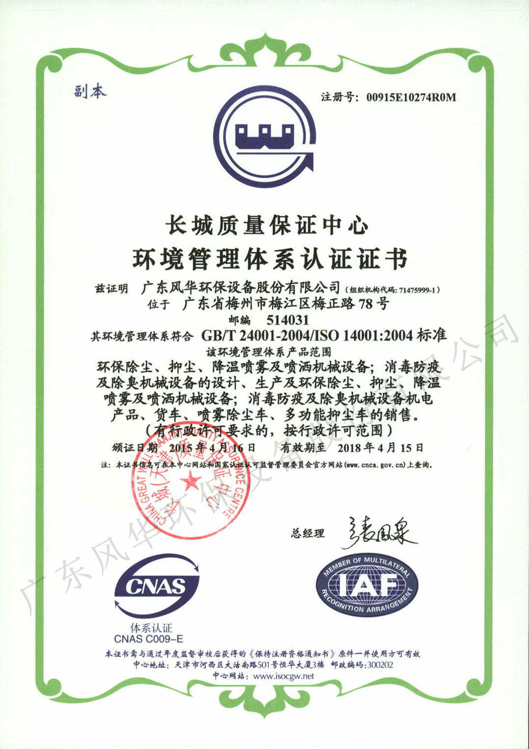 環境管理體系認證證書1